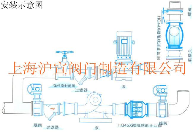微阻球形止回閥,采用橡膠包皮球為閥瓣,在介質的作用下,可在閥體內的滑道上滾動,從而打開或關閉閥門。流量大流阻損失小,密封性能好,消聲關閉,可減小水擊波。水平或垂直安裝均可??捎糜诶渌崴?、工業(yè)及生活污水等管網(wǎng)的水泵出口,防止介質倒流。
